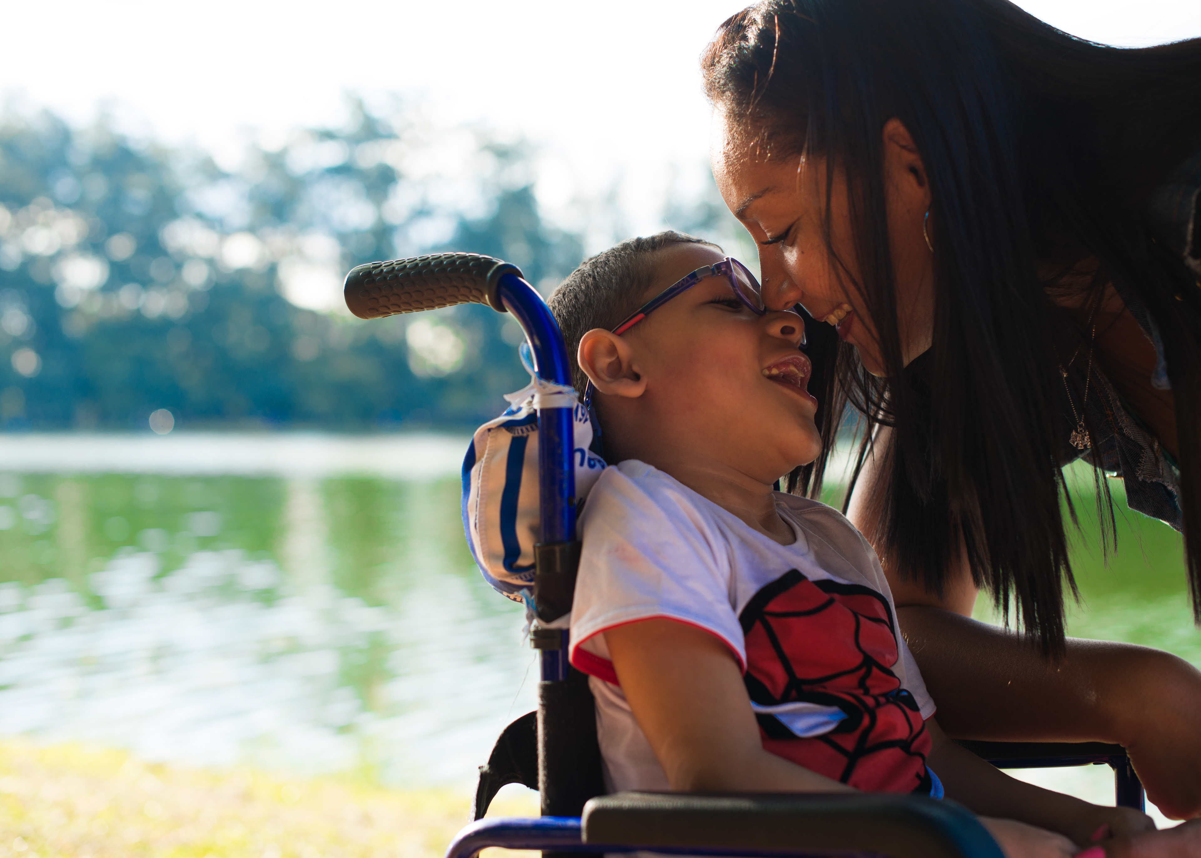 “O Dani é um prematuro extremo de 26 semanas que ficou internado na UTI Neo quase um ano de vida. Nesse um ano ele teve hidrocefalia, teve hemorragia no pulmão, no coração e no cérebro, teve enterocolite até o grau três, cinco paradas cardíacas, uma de quarenta minutos, que ocasionou a paralisia cerebral. Se alimenta pela GTT. Depois de um ano de vida ele veio para casa, e toda nossa vida mudou, e para melhor. Hoje o Daniel vai para escola, faz fisioterapia, TO, fono. Interage bastante com as pessoas, e por onde ele passa, ele transforma o lugar, não porque ele é especial, eu vejo que ele tem uma coisa diferente... parece que um pouquinho ele toca em cada um." MARILIN CRISTINA, MÃE DO DANIEL